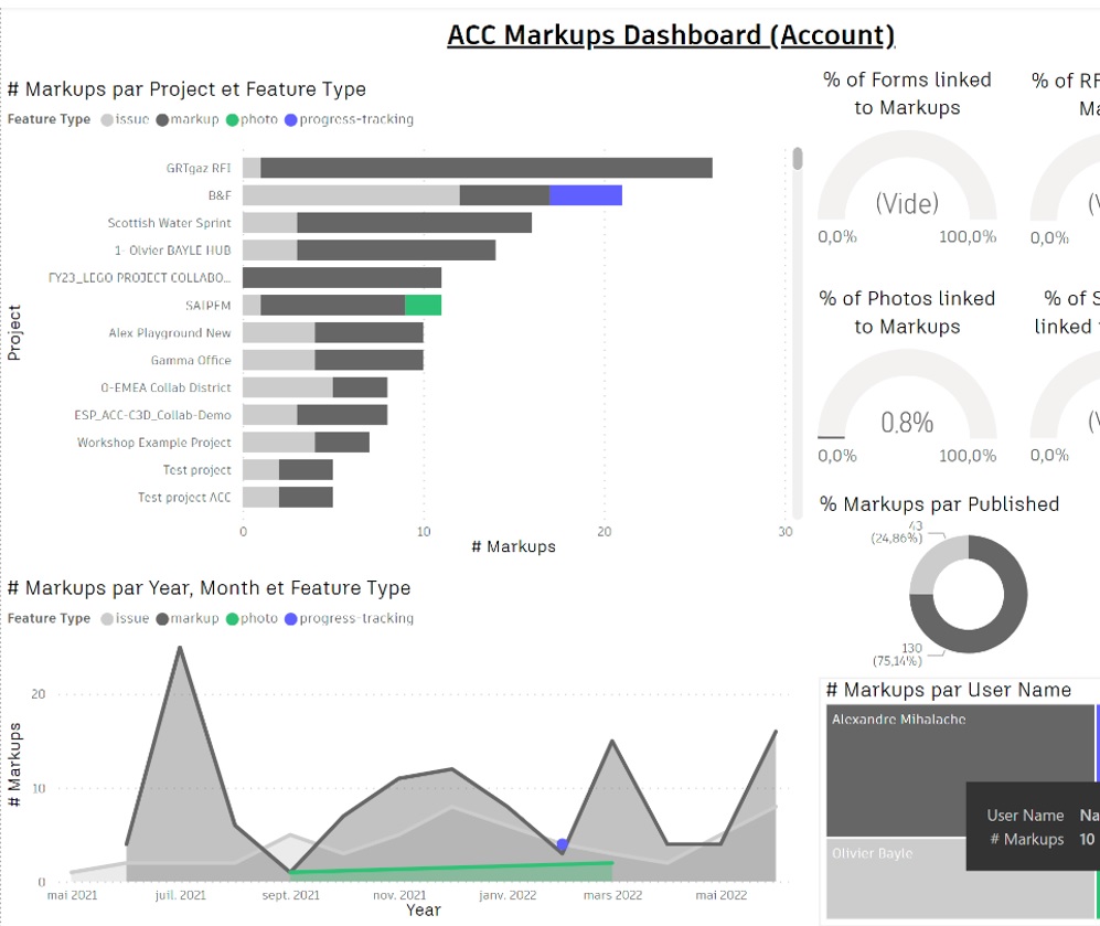 La plateforme Autodesk Construction Cloud propose quelques gabarits Microsoft Power BI prêts à l’emploi.