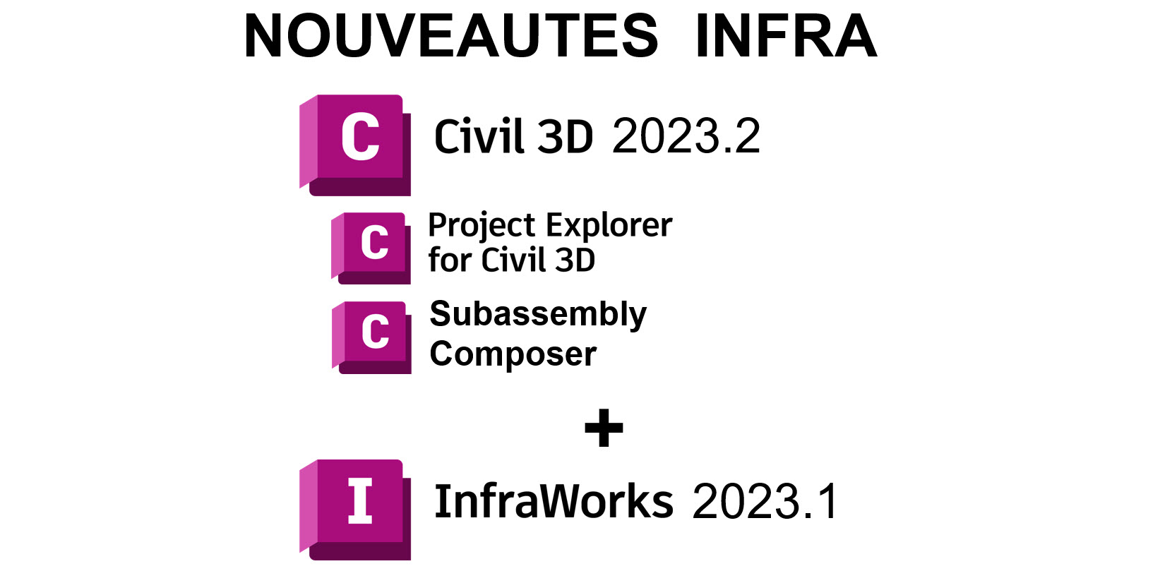 De nouvelles versions de Civil 3D, Subassembly Composer, Project Explorer pour Civil 3D et InfraWorks ont été publiées fin octobre 2022.