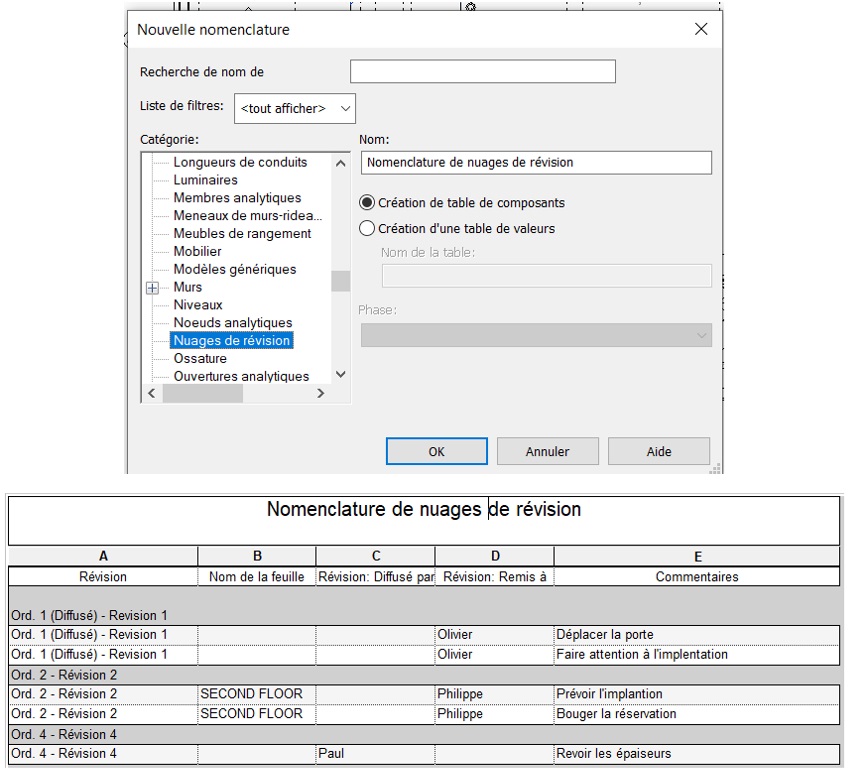 La version Autodesk Revit 2024 permet de regrouper tous les nuages de révision sous forme de nomenclature.