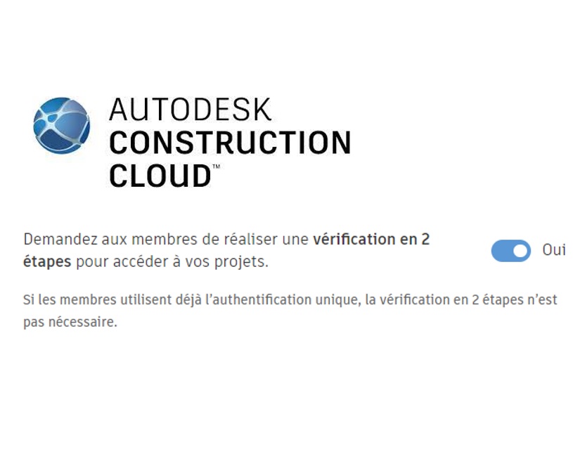 La plateforme Autodesk Construction Cloud (ACC) intègre désormais l’authentification multifacteur (MFA) que les administrateurs de compte peuvent appliquer à toutes les personnes qui ne disposent pas du mode Single Sign-on (SSO) que cela soit au sein de leur organisation et aux entreprises extérieures.